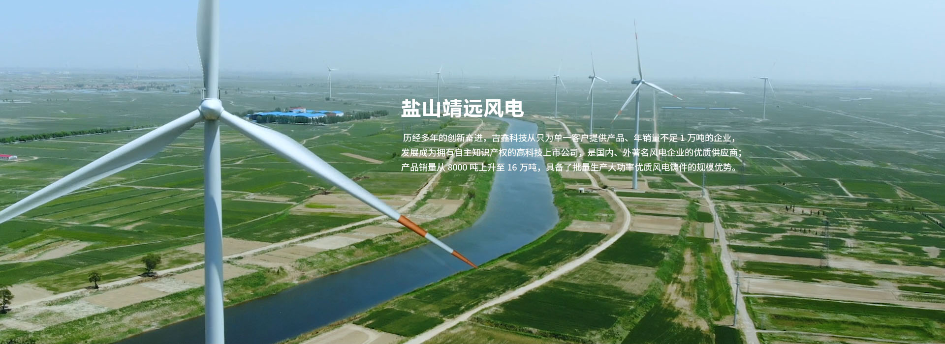 江苏吉鑫风能科技股份有限公司(吉鑫科技)始创于研发和制造大型风力发电机组用零部件的优质企业,创立于2003年,技术能力覆盖了750KW-15MW风力发电机组用轮毂、底座、轴、轴承座等系列产品,具备从模具、铸造、机加工、喷涂、装配的全套生产能力。历经多年的创新奋进,吉鑫科技从单一的零部件制造商向客户终端延伸,成为覆盖装配、风场建设运营以及拥有自主知识产权的高科技上市公司。